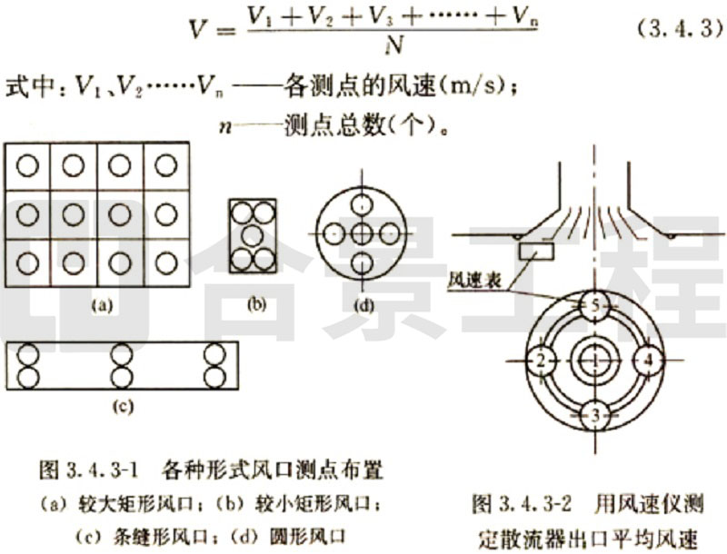 (2)當(dāng)采用熱電風(fēng)速計或數(shù)字式風(fēng)遺計測量風(fēng)量時,斷面平均風(fēng)速為各測點風(fēng)速測量值的平均值,實測風(fēng)量和標(biāo)準(zhǔn)風(fēng)量的計算方法與畢托管和微壓計測量計算方法相同。